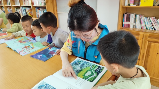 活動伊始,項(xiàng)目部志愿者為孩子們介紹了世界讀書日的由來和意義,分享了閱讀的重要性和一些有趣的讀書故事,激發(fā)孩子們對閱讀的熱愛。隨后,志愿者與孩子們一起挑選心儀的書籍,圍坐在一起,開啟了溫馨的共讀時光。在共讀過程中,志愿者耐心地為孩子們講解書中的內(nèi)容,解答他們的疑問,引導(dǎo)他們深入思考。孩子們?nèi)褙炞⒌伛雎?,積極參與互動,現(xiàn)場氣氛熱烈而融洽。